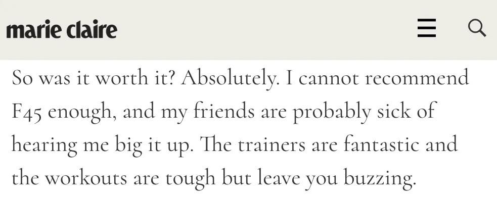 "F45 has a strong community and trainers that help you achieve powerful results...